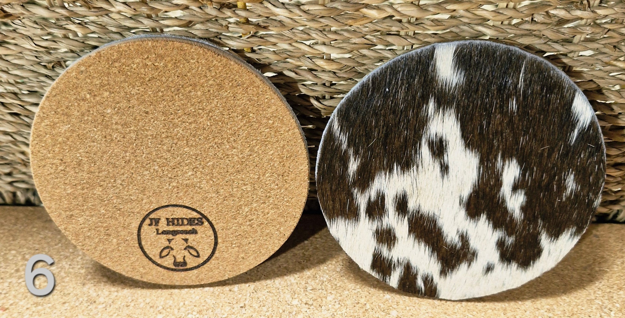 Unique cow hide coasters.
