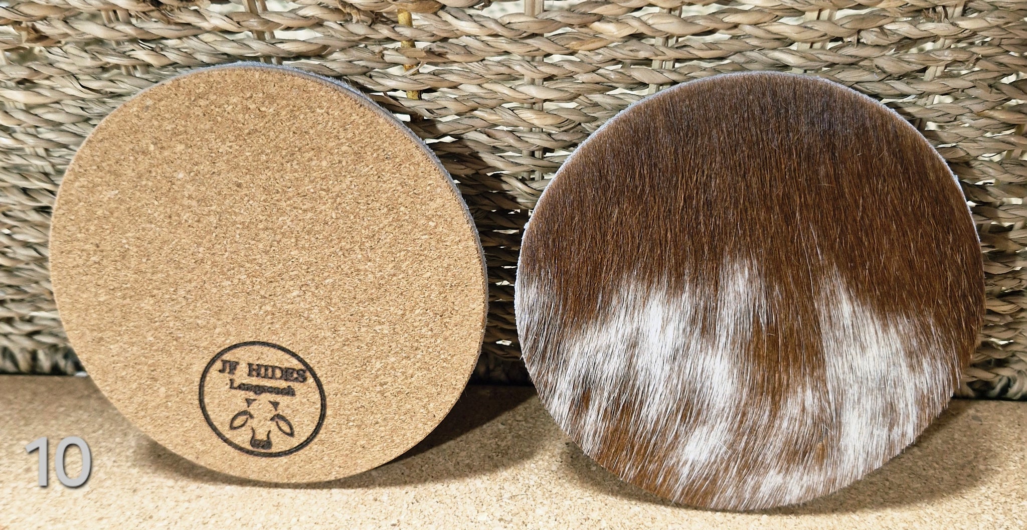 Are you looking for something just a little bit different. What about these cute little cow hide coasters. Handmade on a 10cm cork base they are are both unique and functional. The perfect addition to your everyday table or for that special occasion. If you would like a set of matching coasters, please message us for a custom order.